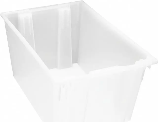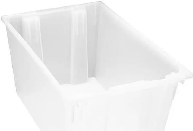 Outside Length 29 1/2 in, Outside Width 19 1/2 in, Outside Height 15 in, Inside Length 26 5/8 in, Inside Width 18 1/4 in, Inside Height 14 7/8 in, Volume Capacity 3.7 cu ft, Load Capacity 100 lb, Color Clear, Material Polypropylene, Use Lid Number Mfr. No. LID301. This item has been restricted from sale in the following state (s): []