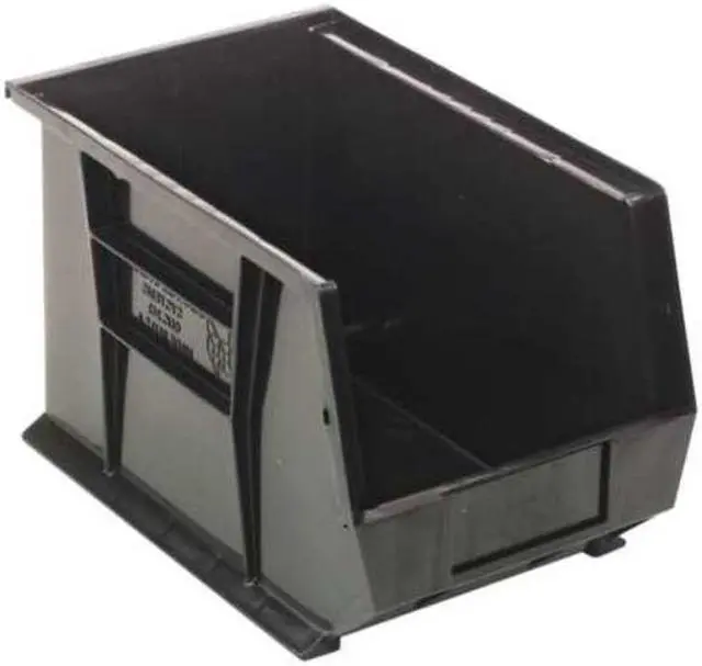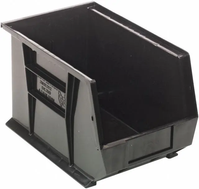 Hang and Stack Bin, Outside Length 13 5/8 in, Outside Width 8 1/4 in, Outside Height 8 in, Inside Length 12 1/2 in, Inside Width 6 3/4 in, Inside Height 7 3/8 in, Volume Capacity 0.36 cu ft, Load Capacity 75 lb, Material Polypropylene, Color Black, Use Divider No. Mfr. No. DUS242, No. of Divider Slots Long 1, No. of Divider Slots Short 0, ESD Conductive No