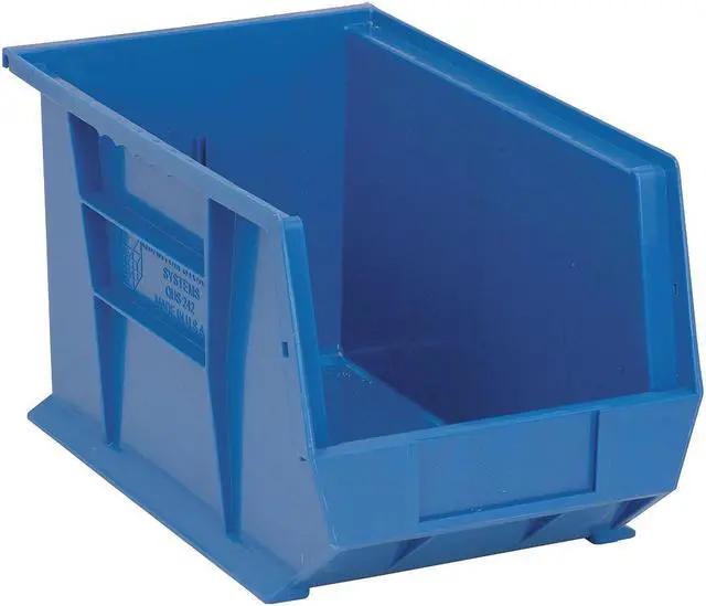 This QUANTUM STORAGE SYSTEMS hang and stack bin provides an ideal, customized storage space solution. Durable, injection-molded construction is impervious to most chemicals. Built-in rear hanger allows bin to hang from louvered panels or rails. Bin has front, back and side grips to ease handling, and has a wide stacking ledge and anti-slide lock to help keep stacked bins steady and prevent forward shifting. Waterproof and resist rust and corrosion. The large molded front label slots accept ID labels. Bin is autoclavable up to 250°F and resists extreme cold. Hang/Stack Bin, 13-5/8x8-1/4x8, Blue