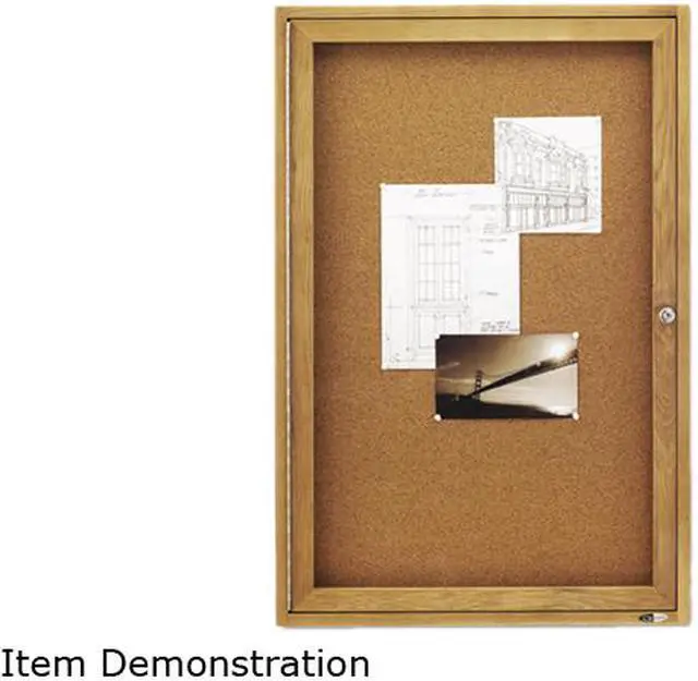 Enclosed Bulletin Board, Natural Cork/fiberboard, 24 X 36, Oak Frame