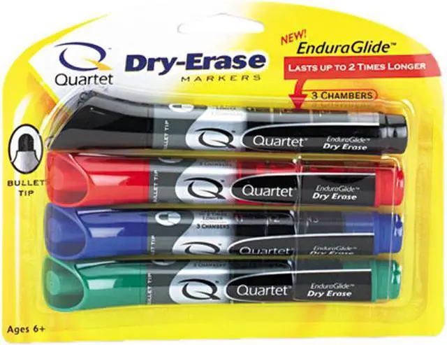 Quartet 5001-1M EnduraGlide Dry Erase Markers, Bullet Tip, Assorted Colors, 4/Set