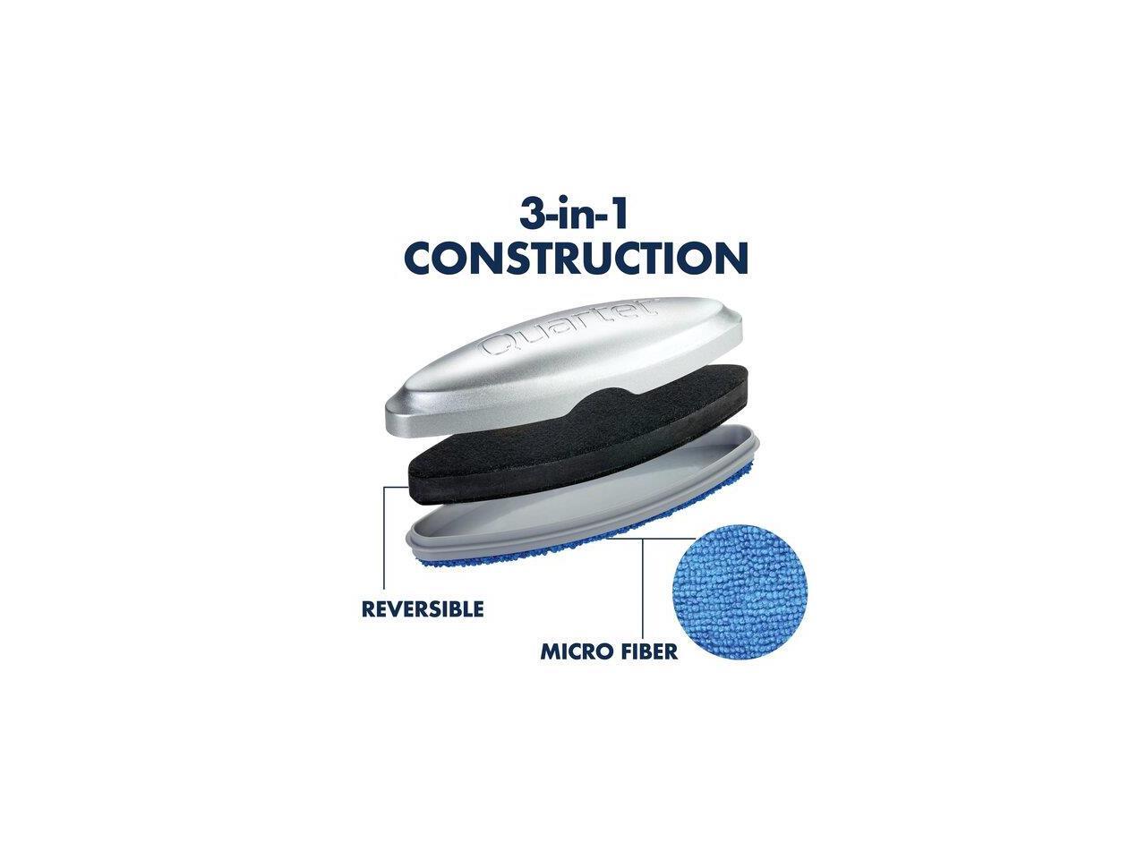 Quartet SFEB3 Premium Magnetic 3-in-1 Glass Board Eraser, 6 1/2" x 2" x 1 3/8", Silver