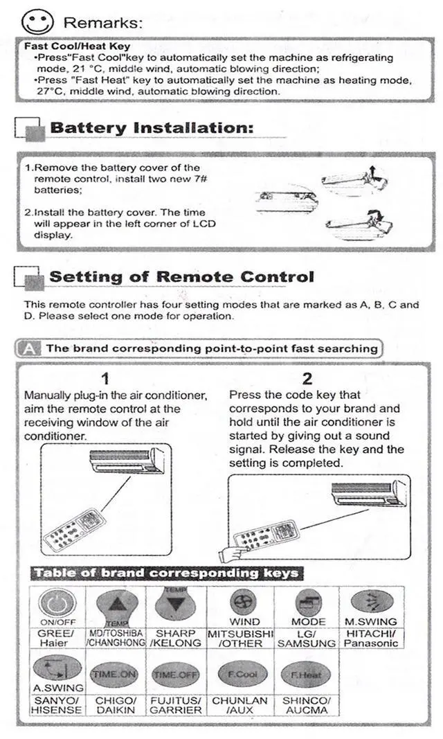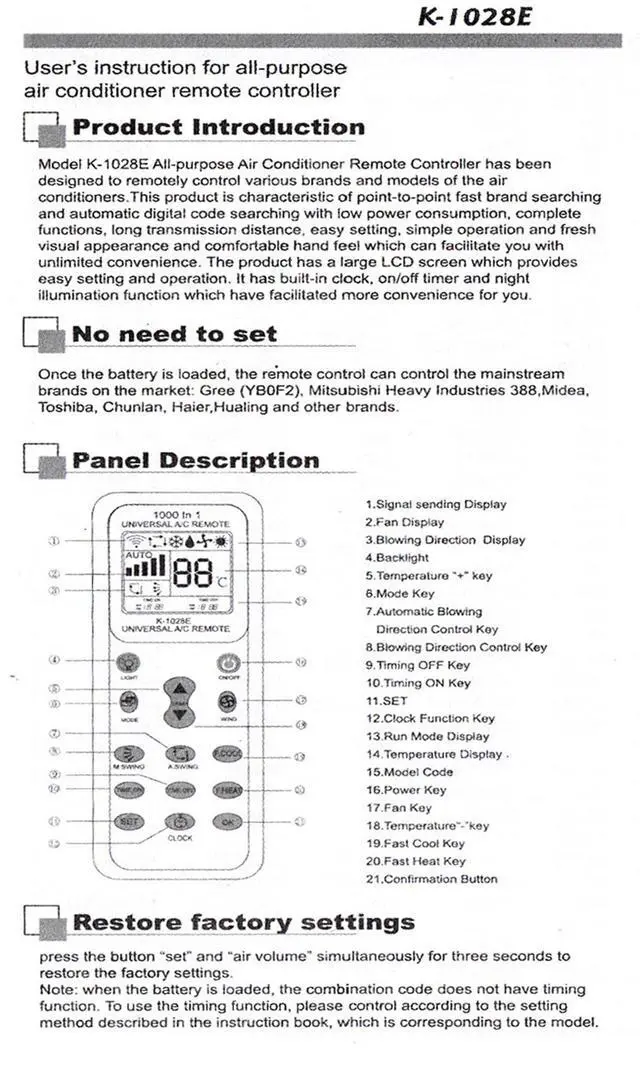 Universal A/C Air Conditioner LCD Remote Control.