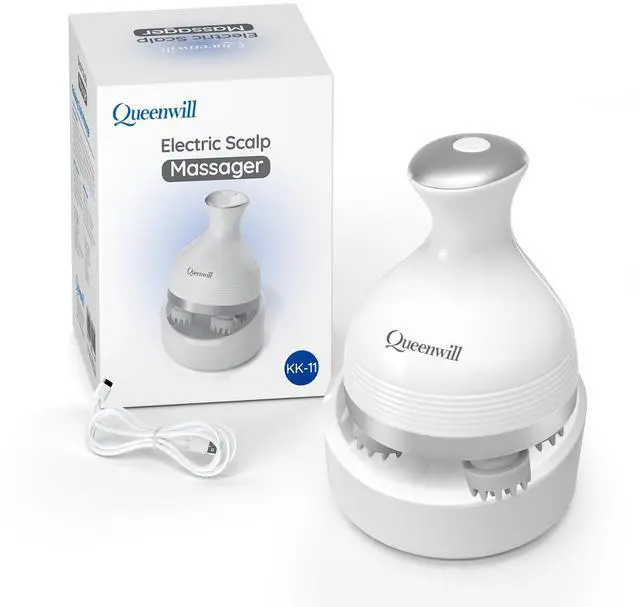 Deep Scalp MassageQueenwill Head Massager Scalp Pressure Relaxation has four massage heads, each with 28 individual nodes, each massage head can rotate clockwise and counterclockwise to provide you with a soothing massage to help stimulate hair growth, deep hair cleansing and stress and pain relief.