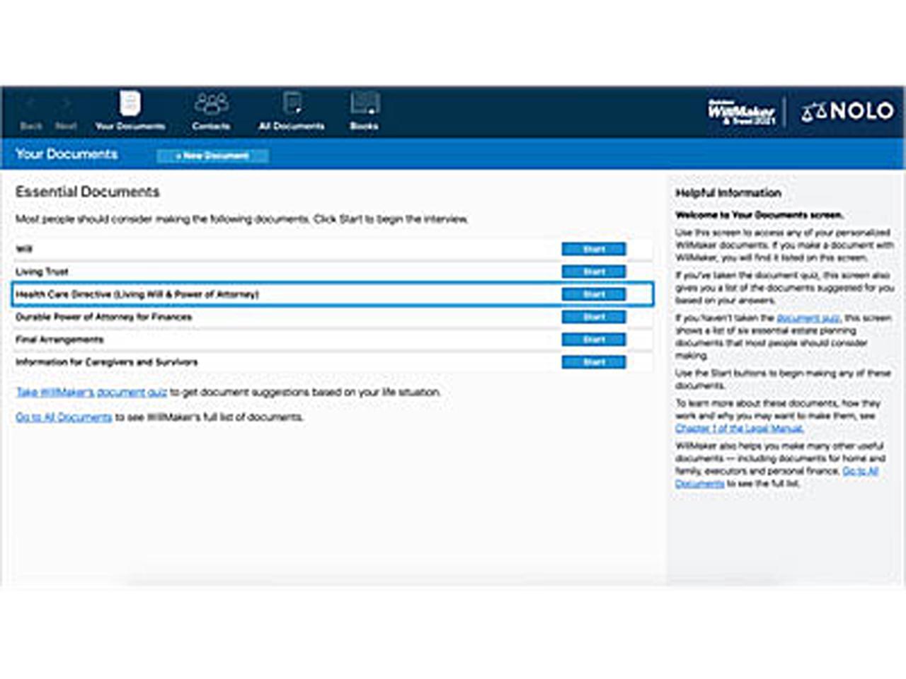 Essential Documents including a health care directive and financial power of attorney