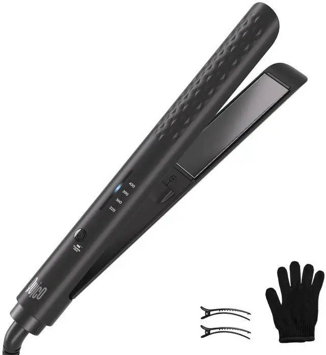 - [Temperature Memory, Auto Shut-Off & Ideal Gift] Our straightening iron simplifies your routine. For every next use, the temperature will automatically heat up to the exact temperature you used last time, saving time on setting to your desired hairstyle. Safety is guaranteed with auto shut-off after 60 minutes without any operation. This is an ideal gift for any occasion, it comes with a one-year warranty. Enjoy effortless styling with Quico Hair Iron Straightener.