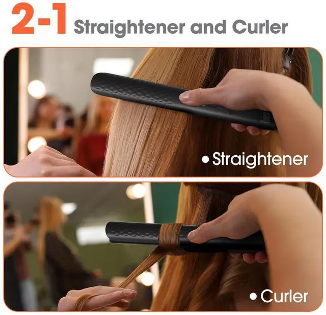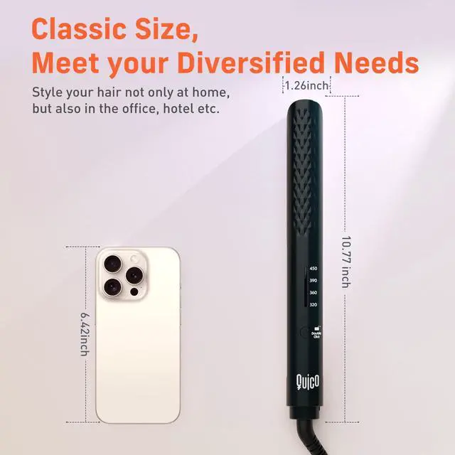 - [Negative Ion Flat Iron & Ceramic Heating Plates] Quico flat iron hair straightener features with its advanced negative ion technology, static electricity is minimized, ensuring a frizz-free hairstyle every time. Equipped with upgraded heating plates infused with tourmaline and ceramic powder, not only protects your hair from damage but also leaves it smoother and less frizzy. Say goodbye to unruly hair and hello to silky, salon-like results!