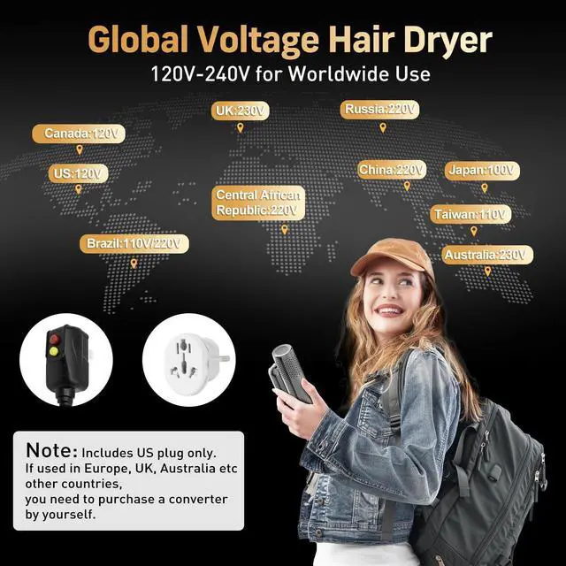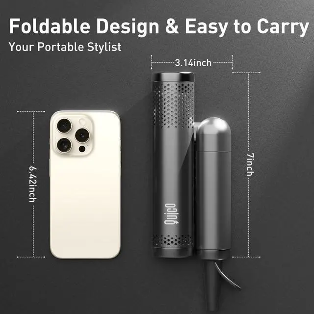 LIGHTWEIGHT, FOLDABLE AND COMPACTWeighing 1lb, this travel blow dryer boasts a distinctive design with a volume of about half that of a typical hair dryer. It effortlessly fitting into your essentials, with the range , this travel blow dryer is an ultimate companion for those seeking a portable, yet powerful, styling experience.