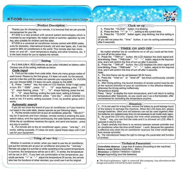 | Special Feature | Compatible with major brand ductless air conditioners, Numeric code input, has 6000 codes |