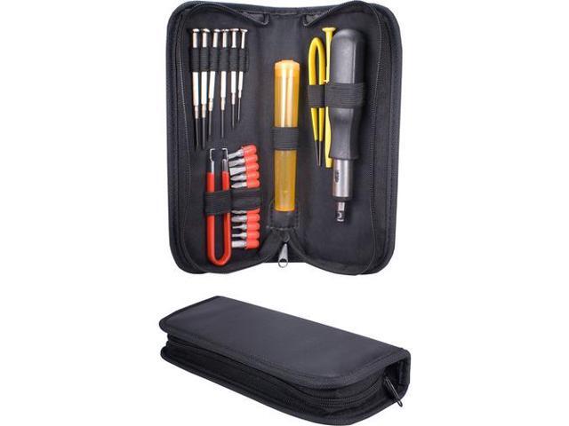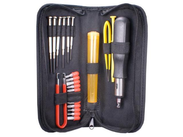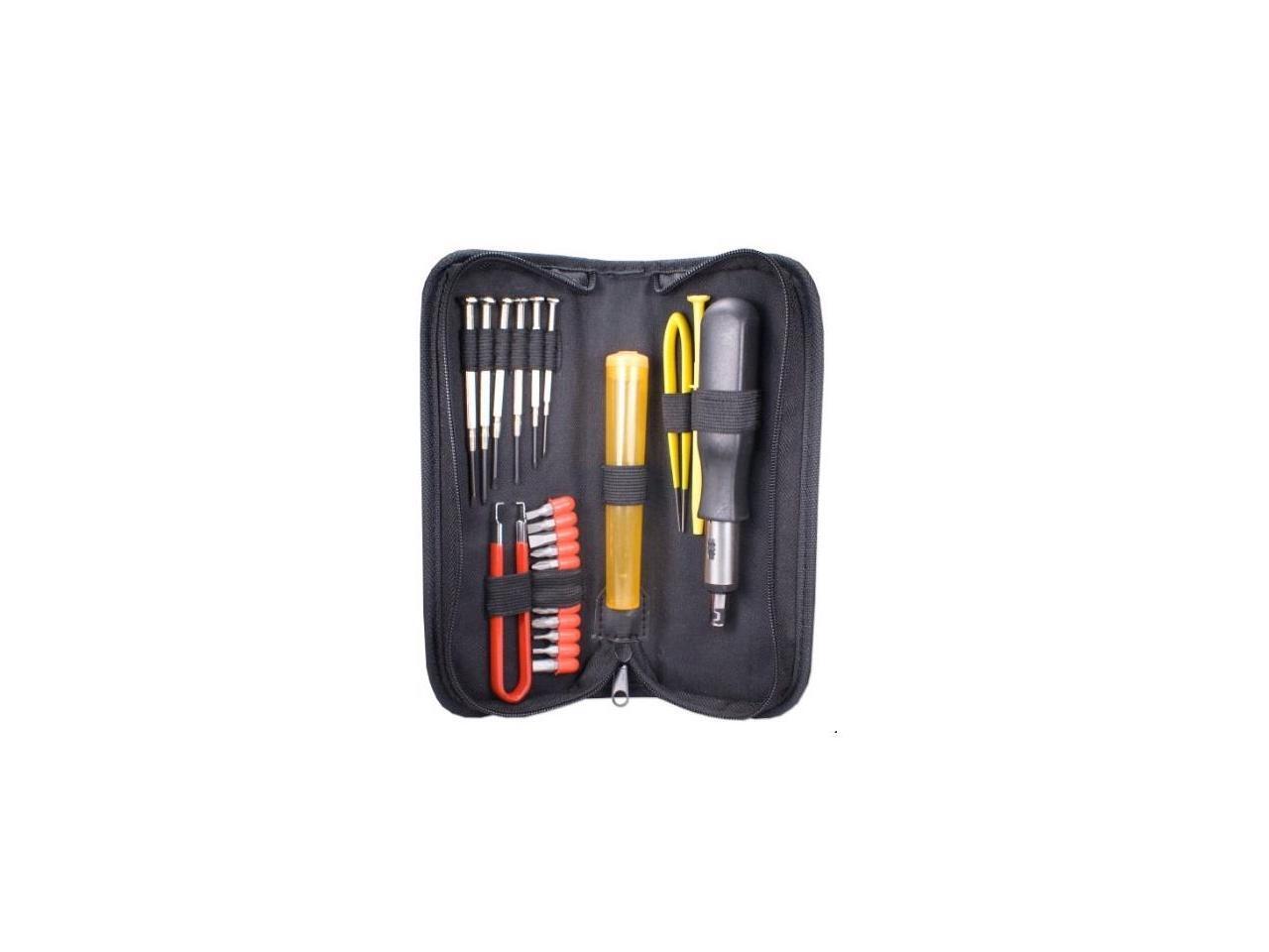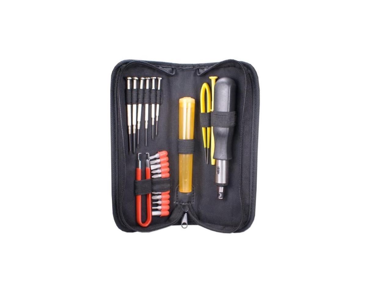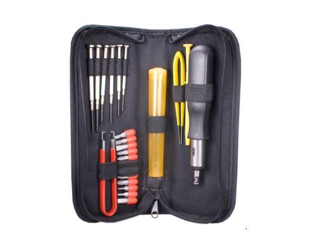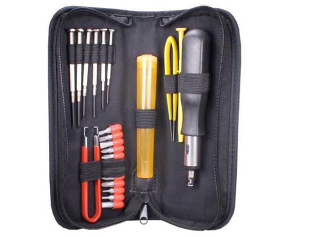 - Includes 6 precision screwdrivers, 11 screw bits and Ratchet bit Adaptor, IC inserter/extractor clipper, 3-prong parts retrieval claw