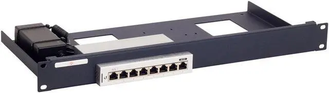The RM-UB-T1 gives you the ability to mount your Ubiquiti desktop appliances in a 19" rack. The rack is tailored specifically for the listed models to guarantee a perfect fit. In addition, the connections are brought to the front for easy access. The power supply is fixed to prevent an accidental loss of power.