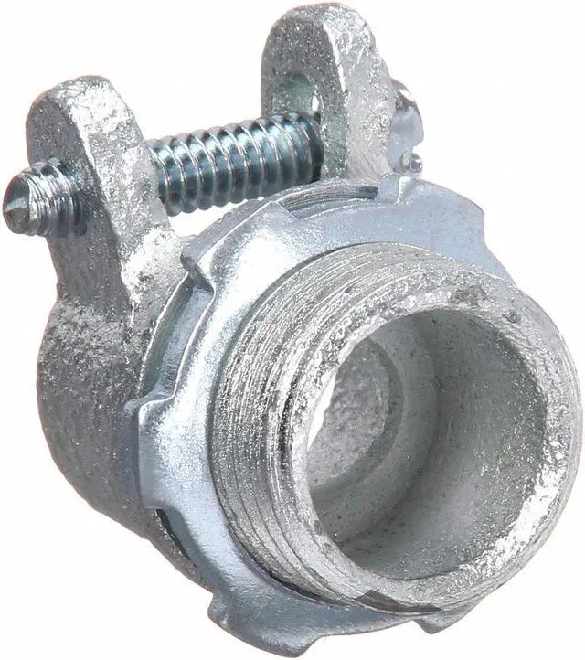 Straight Connector - Squeeze Clamp Style, Box Connection 1/2 in MNPT, Trade Size 3/8 in, Iron, Insulated No, Gray, For Use With AC, Flexible Conduit, MC, cULus Listed, Connector Style Straight, Connection Orientation Straight, Squeeze Clamp, Compatible Knockout Trade Size 3/8 in, Connection Type Squeeze, For Maximum Cable OD 0.64 in, For Minimum Cable OD 0.53 in, Overall Height 1 11/32 in, Overall Length 1 1/16 in, Overall Width 1 1/8 in, Corrosion Resistant, Thread Size 1/2 In.
