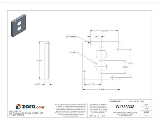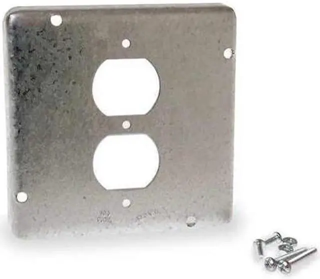 Electrical Box Cover, Box Type Square, Cover Type Duplex Receptacle, Number of Gangs 2, Material Galvanized Steel, Depth 1/2 in, Width 4 3/4 in, Length 4 3/4 in, Capacity Not Applicable, Raised Height Not Applicable, Color Gray. This item has been restricted from sale in the following state (s): []