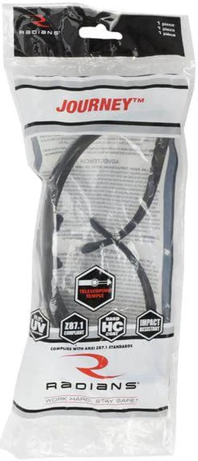 Safety Glasses, Series Journey (TM), Gender Unisex, Lens Color Gray, Polarized Lens No, Lens Coating Scratch-Resistant, No Foam Lined, Eyewear Frame Design Wraparound, Eyewear Frame Style Full-Frame, Frame Color Black, Eyewear Size Universal, Frame Material Nylon, Lens Material Polycarbonate, Temple Color Black, Temple Style Telescoping, Photochromatic Lens No, Metal Detectable No, X-Ray Detectable No, UV Protection 99.9 Percent UVA/UVB, Standards ANSI Z 87.1 +. This item has been restricted from sale in the following state (s): []