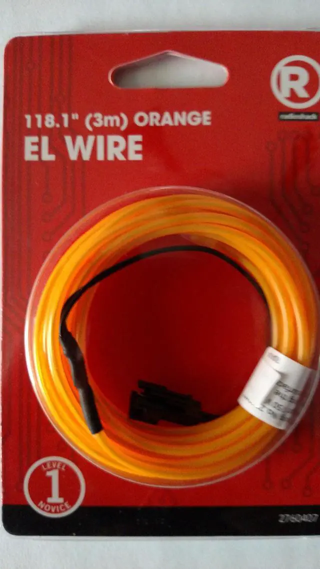 Orange EL wire by Radio Shack.Lightweight, flexible and easy to install. Provides soft orange light