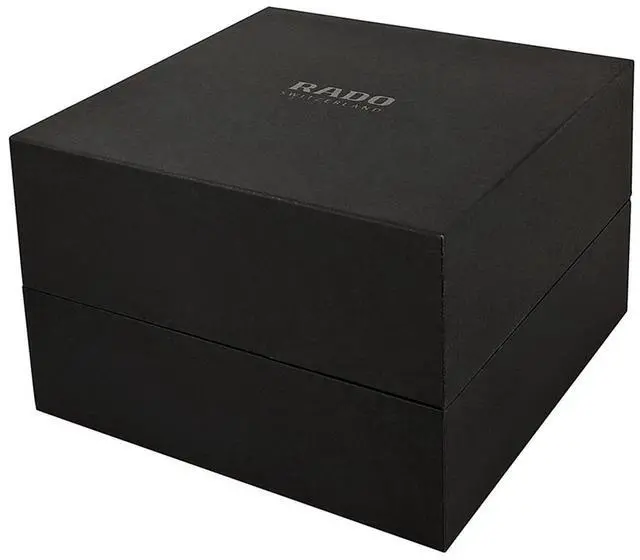 This genuine Rado watch box is designed to securely hold and protect your timepiece from dust and scratches. It is made from high-quality materials, and its sleek black design with the RADO logo adds sophistication to any dresser or closet. Get this Rado watch box today to keep your watch safe and organized.