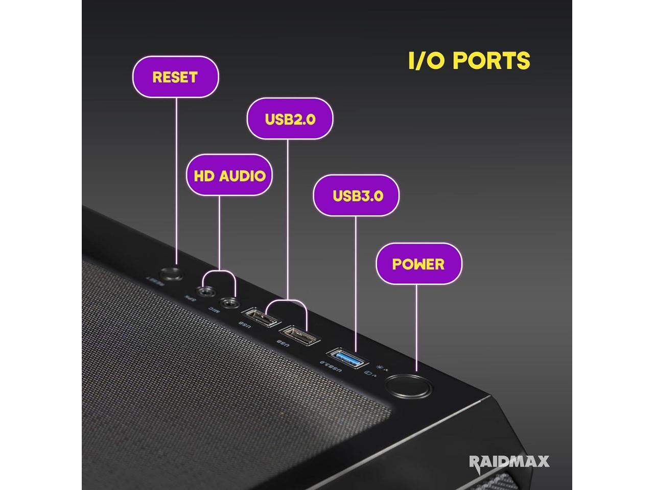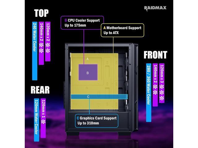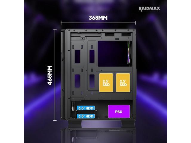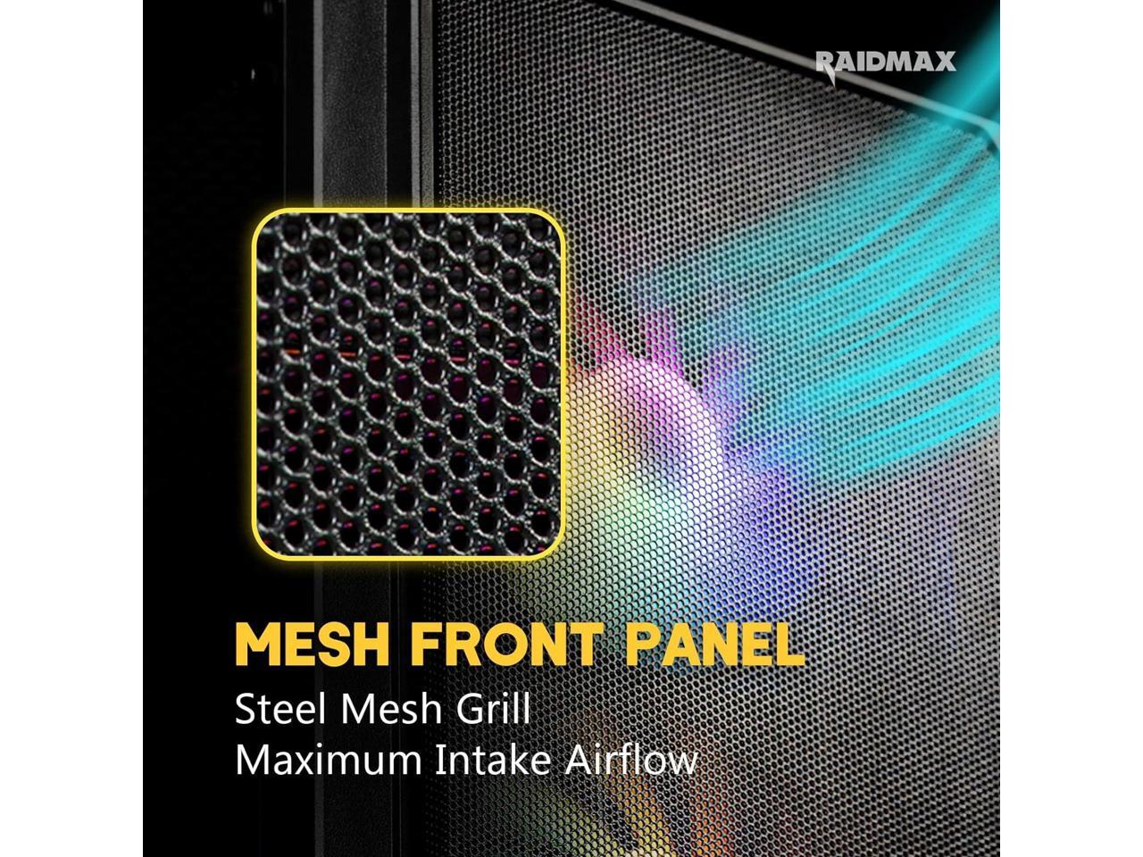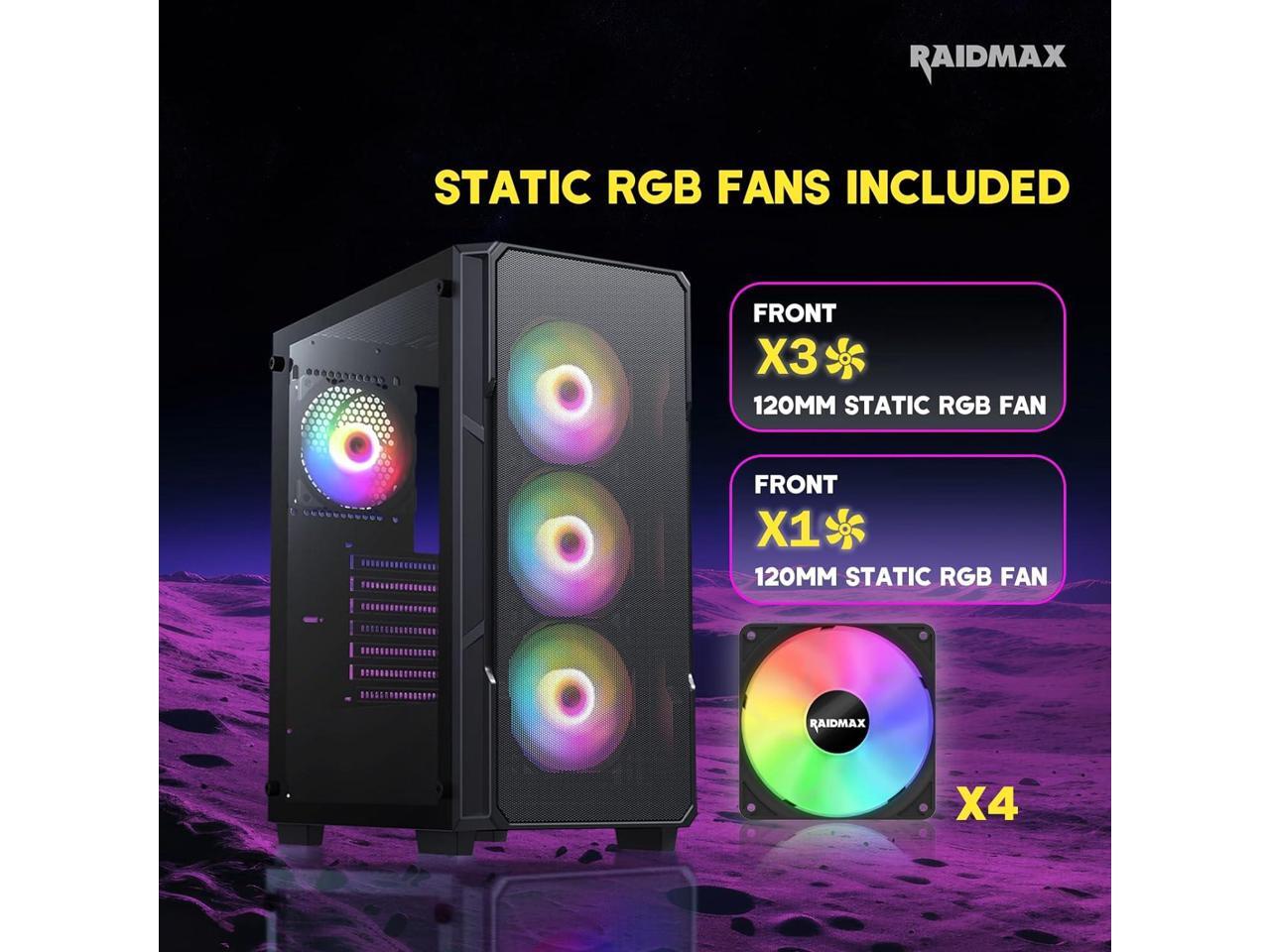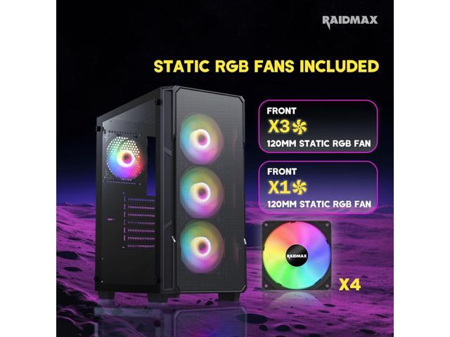 Raidmax Vector V212 Gaming Chassis - Pre-Installed 4X Static RGB Color Fans, Supports 240mm Water Cooler, Tempered Glass, Mesh Grill Front, Fits 310mm GPU & 175mm Height Air Cooler (Black)