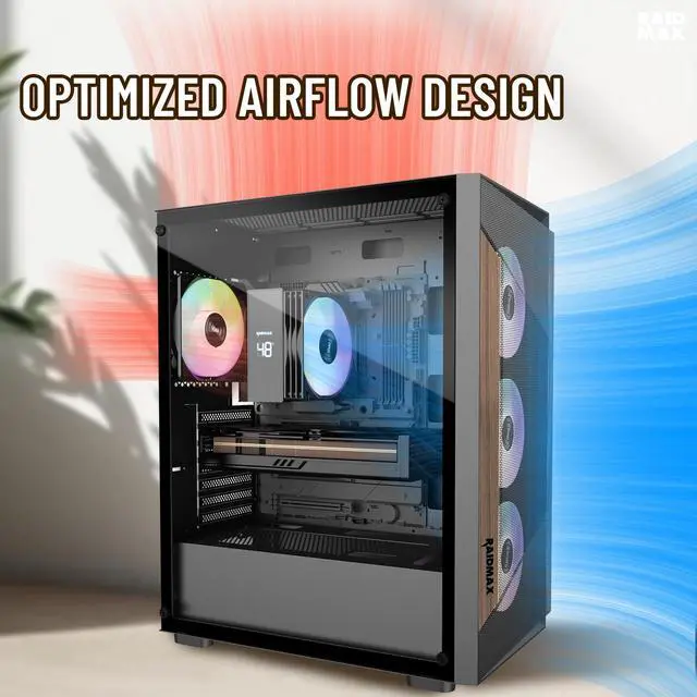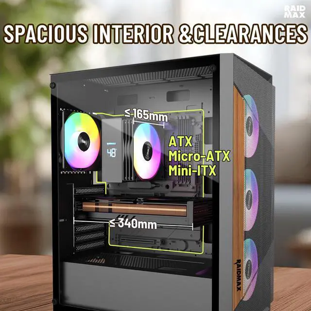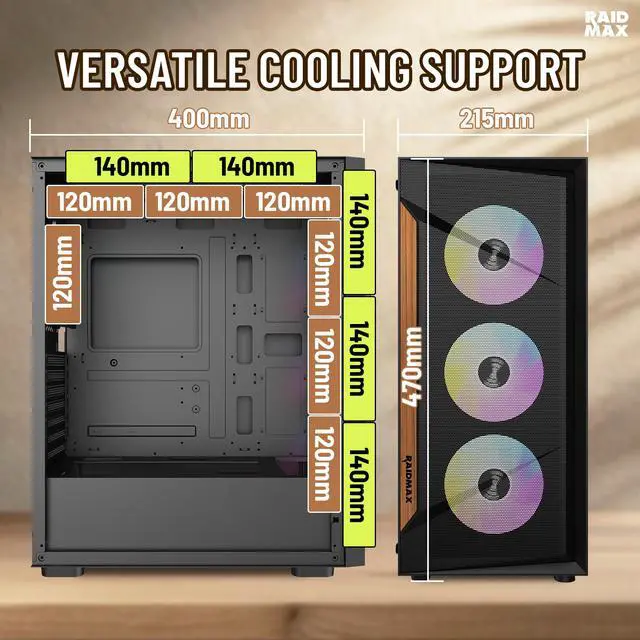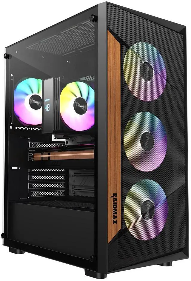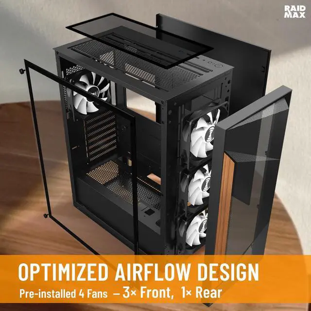 The RAIDMAX V219 blends modern design with practical airflow performance, making it an ideal choice for gamers and PC builders who value both style and function. Featuring a wood-trimmed mesh front panel, the V219 adds a premium, natural touch while maintaining strong front air intake for effective system cooling.