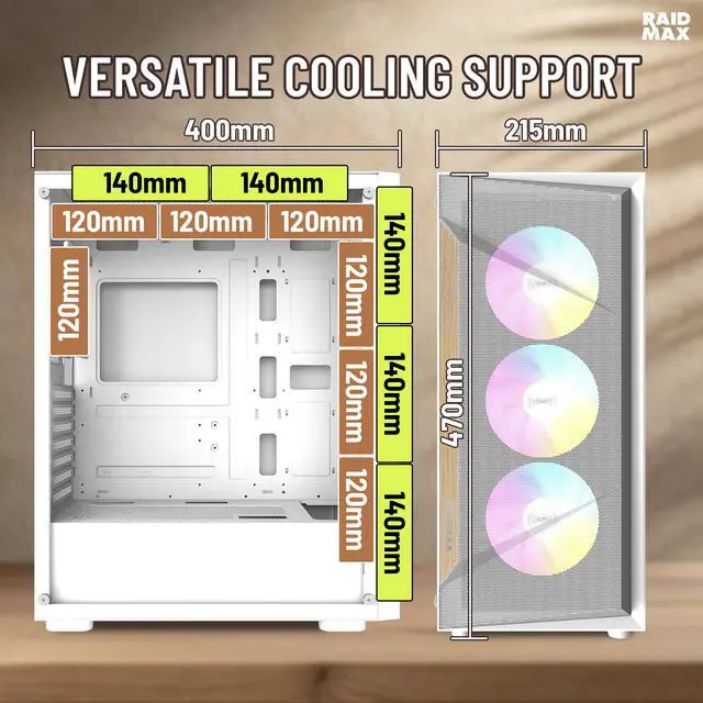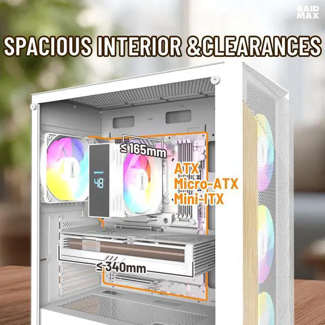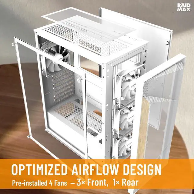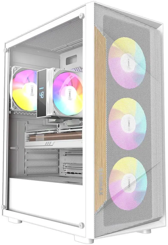 The Raidmax V219 redefines the "gaming" aesthetic by introducing an elegant wooden-trimmed mesh front panel. Designed for those who want a powerful PC that complements their living space rather than clashing with it, the V219 offers a sophisticated look without sacrificing a single degree of thermal efficiency.