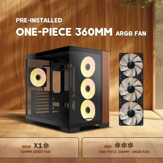 Innovative 3-in-1 Fan Design: Pre-installed with 1x 120mm ARGB fan and 1x ARGB 360mm fan that performs like 3x 120mm fans, offering powerful airflow with fewer cables for easy installation and a clean look.