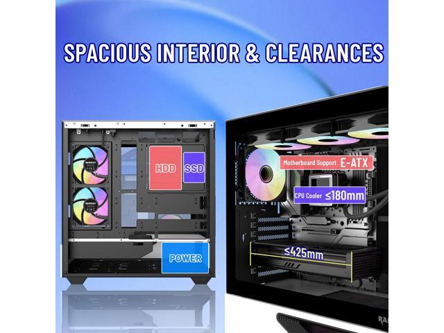 - 5x Pre-Installed 120mm ARGB Fans Includes side-mounted reverse blade fans to maintain airflow while showcasing the lighting from outside.