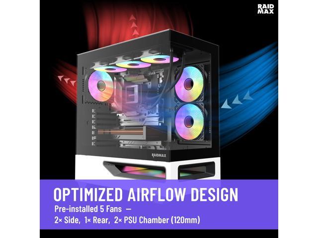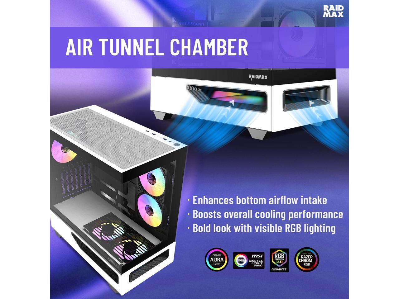 RAIDMAX H200 Air Tunnel ATX Mid Tower Gaming Case, 238mm Wide Body, 5x 120mm ARGB Fans with Side Reverse Blade Intake, Bottom Airflow Tunnel, Tempered Glass, Supports 400mm GPU and Tall Air Cooler