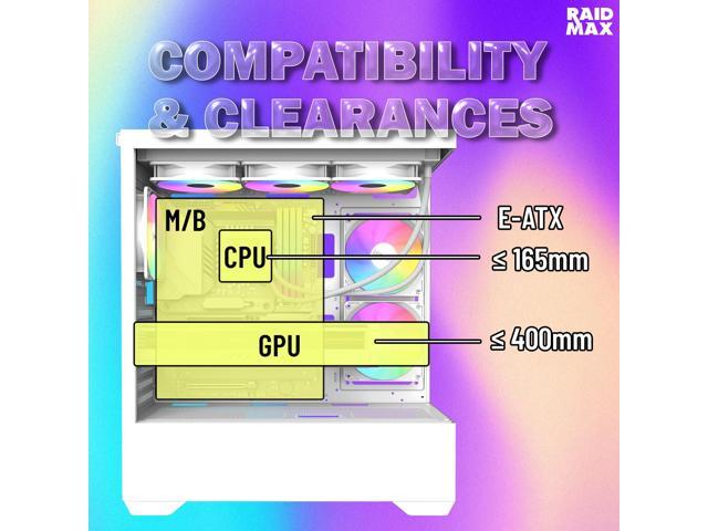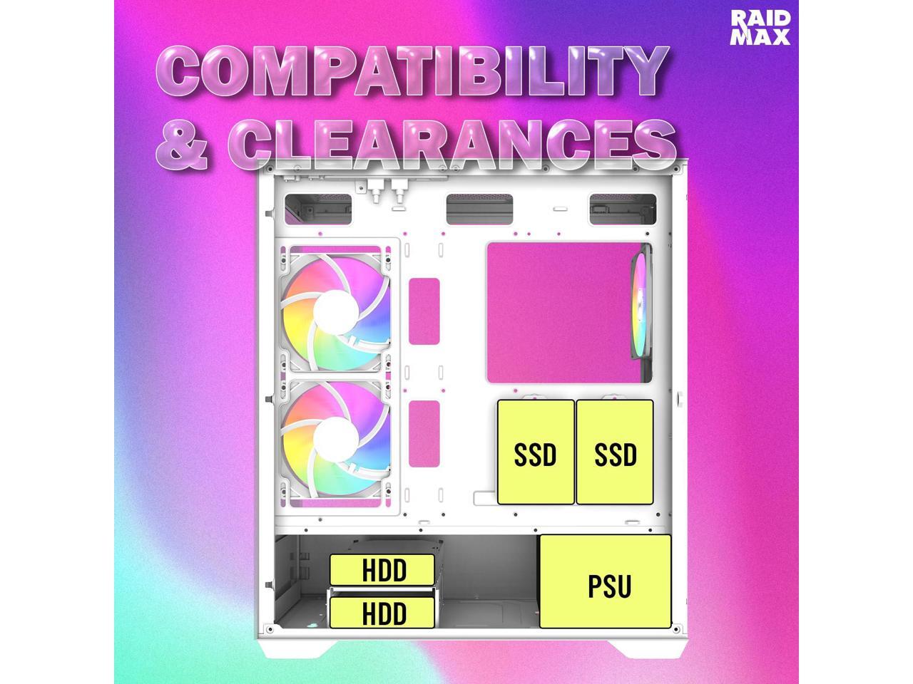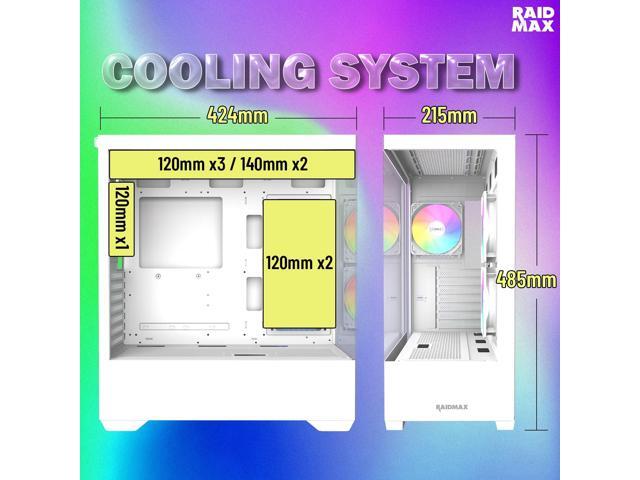 Raidmax I801 White Panoramic Gaming Case with 700W 80+ Gold PSU, ATX Mid Tower, Tempered Glass, Pre-Installed 3 x 120mm ARGB Fans, Supports 240/360mm Liquid Cooler & RTX 50 Series GPU