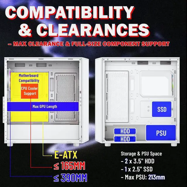 • *Spacious Interior: Supports ATX, Micro-ATX, and Mini-ITX motherboards with ample space for high-performance components.