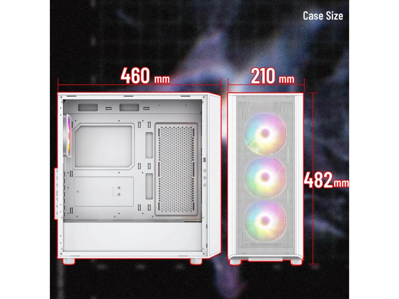 Raidmax X606 White Gaming Case include 80+ Certified 700watts, Front Air Intake Metal Mesh Panel, Includes 3x 140mm ARGB Fans + 1x 120mm ARGB Fans, support 240/280/360mm Water Cooler and RTX 50 GPUs