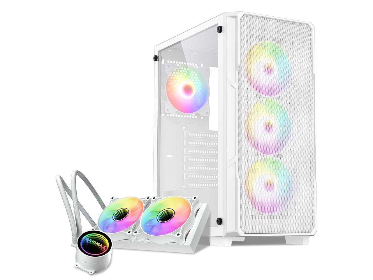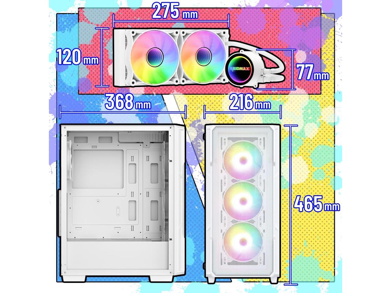 Raidmax V212 ATX Gaming PC Case, White, Mesh Front Panel, Tempered Glass, 4 Static RGB Color Fans, 240mm AIO Liquid Cooler