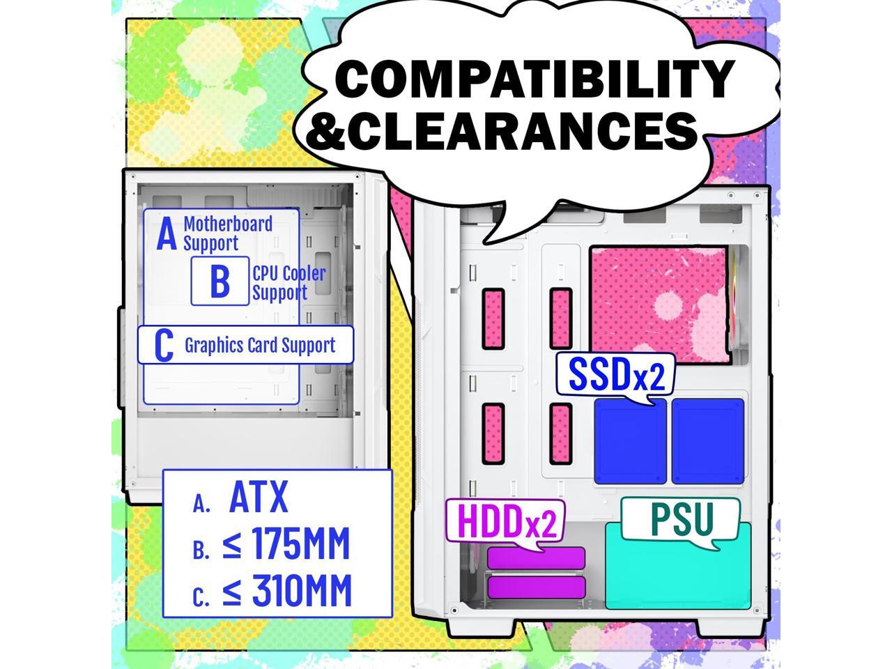 - Spacious and Compatible Layout: Supports ATX, Micro-ATX, and Mini-ITX motherboards with ample room for long GPUs, multiple storage devices, and easy cable routing.