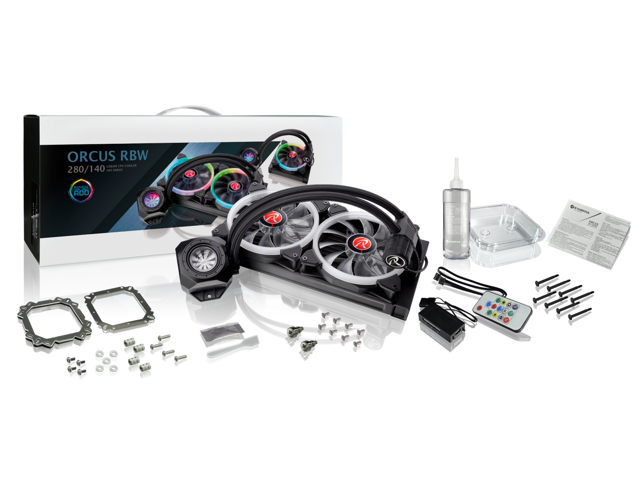 RAIJINTEK ORCUS 280 RBW, an AIO Water cooler for CPU, with 2pcs 14025 ARGB PWM Fans, Copper water block, Durable and reliable PUMP, Rotating Blade with ARGB LED, Compatible with Intel & AMD Socket CPU