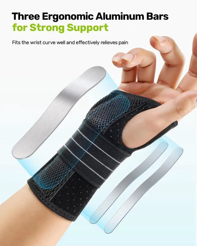• Superior Wrist Support & Stability: Three ergonomic aluminum bars fix the wrist, the shape of the aluminum bars perfectly fits the wrist curve and provides strong support. Wrist brace is effective for arthritis, carpal tunnel, tendinitis or tendinopathy, ganglion cysts or simply a wrist sprain or strain. The two aluminum bars on the back of the wrist can be bent and adjusted appropriately according to the shape of the hand.