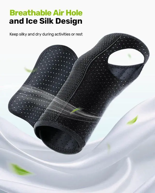 • Breathable Mesh & Cooling Ice-Silk Material: More than 150,000 3D mesh holes per square meter. The wrist contact surface is made of ice silk material, which is comfortable and not stuffy, and can keep the wrist protector dry when the hand moves.