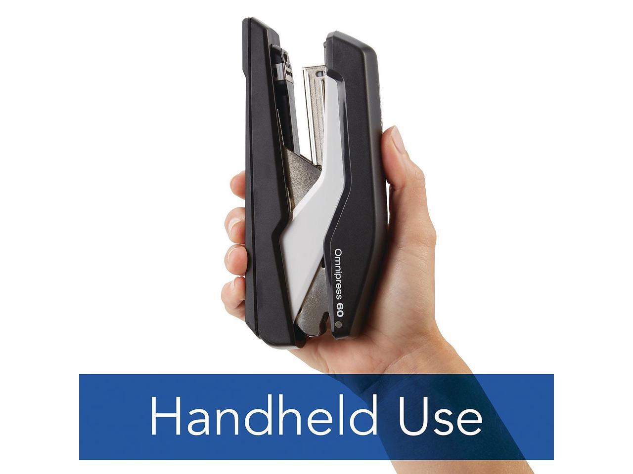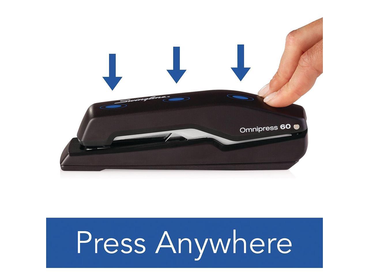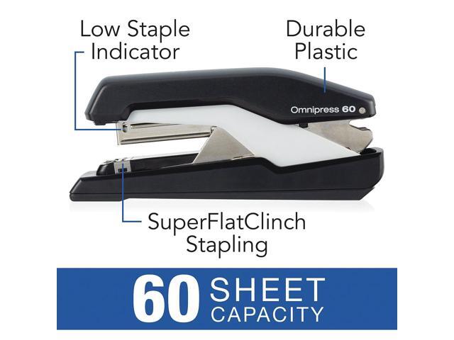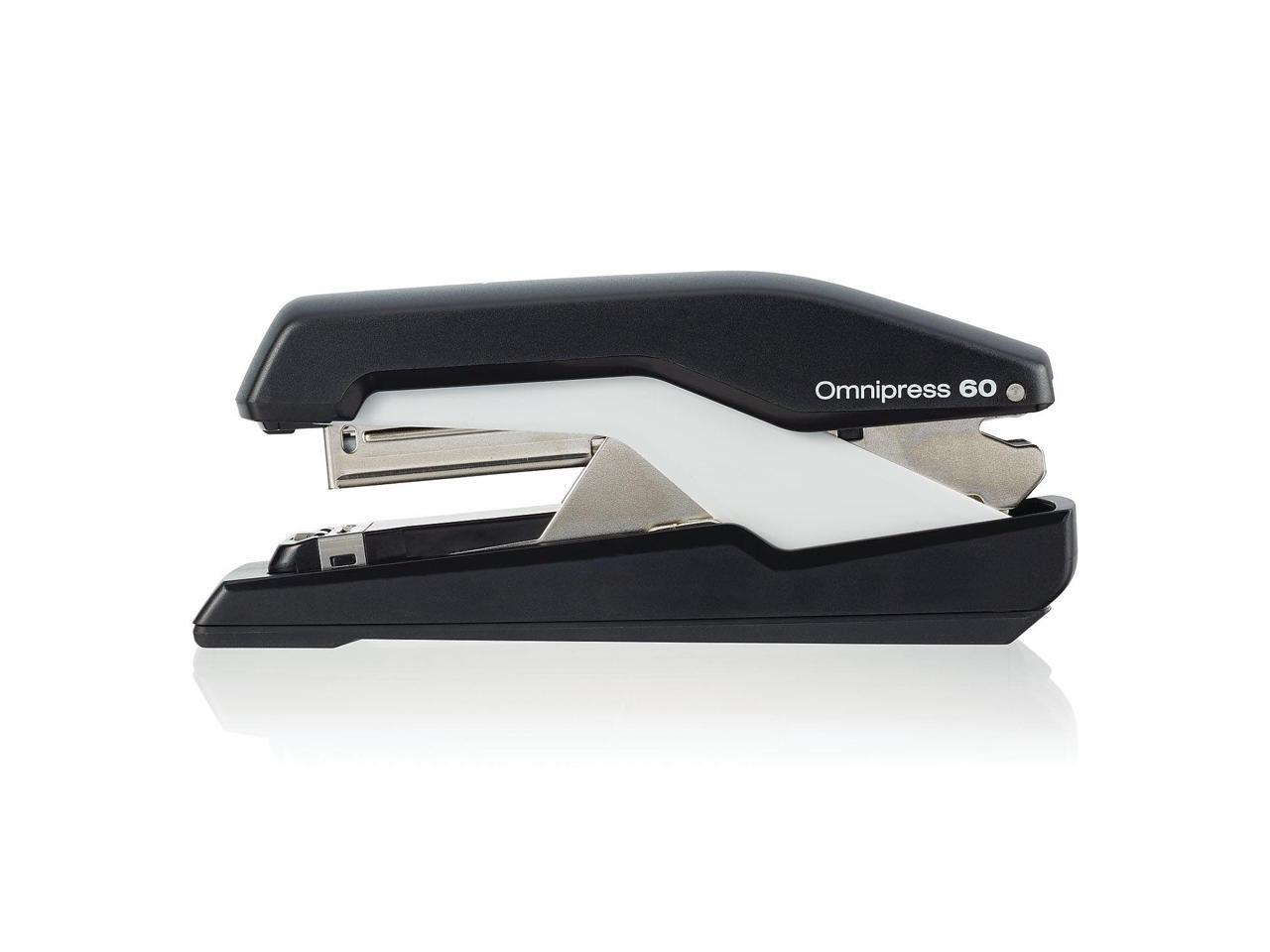 - Staple up to 60 sheets at a time with less effort than traditional staplers. Unlike traditional staplers, the revolutionary Omnipress allows you to press anywhere on the top of the stapler, even with just one finger, for a unique stapling experience.
