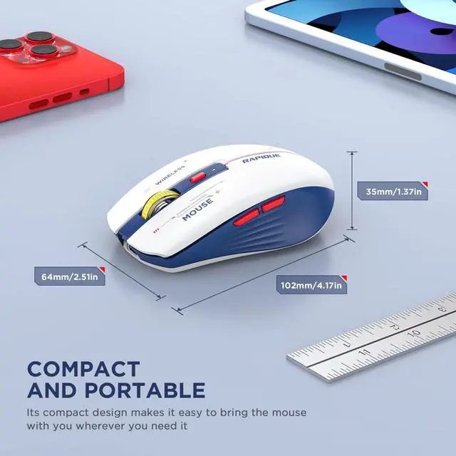 The cool blue and white color scheme and red LED lighting accents make this wireless mouse visually distinctive. It is a good choice among many mice.
