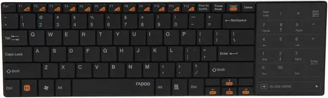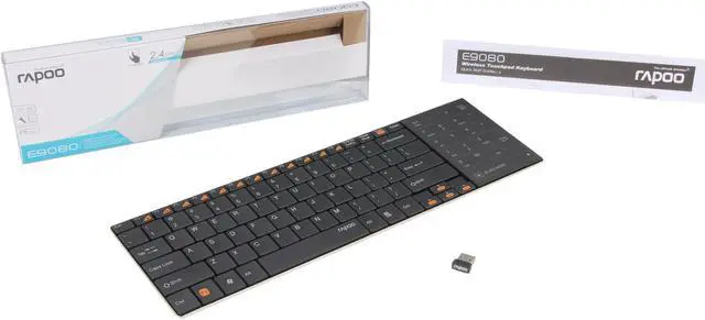 The Rapoo E9080 is a perfect combination of a slim wireless keyboard and a touchpad which performs the functions of a mouse. You can switch between touchpad and numpad mode with a gentle slide. 2.4GHz wireless technology offers high performance wireless connection within up to 10m while scissor key structure allows for smooth and comfortable operation. Show off the elegance brought by the 5.6mm ultra-slim design and brushed stainless steel.