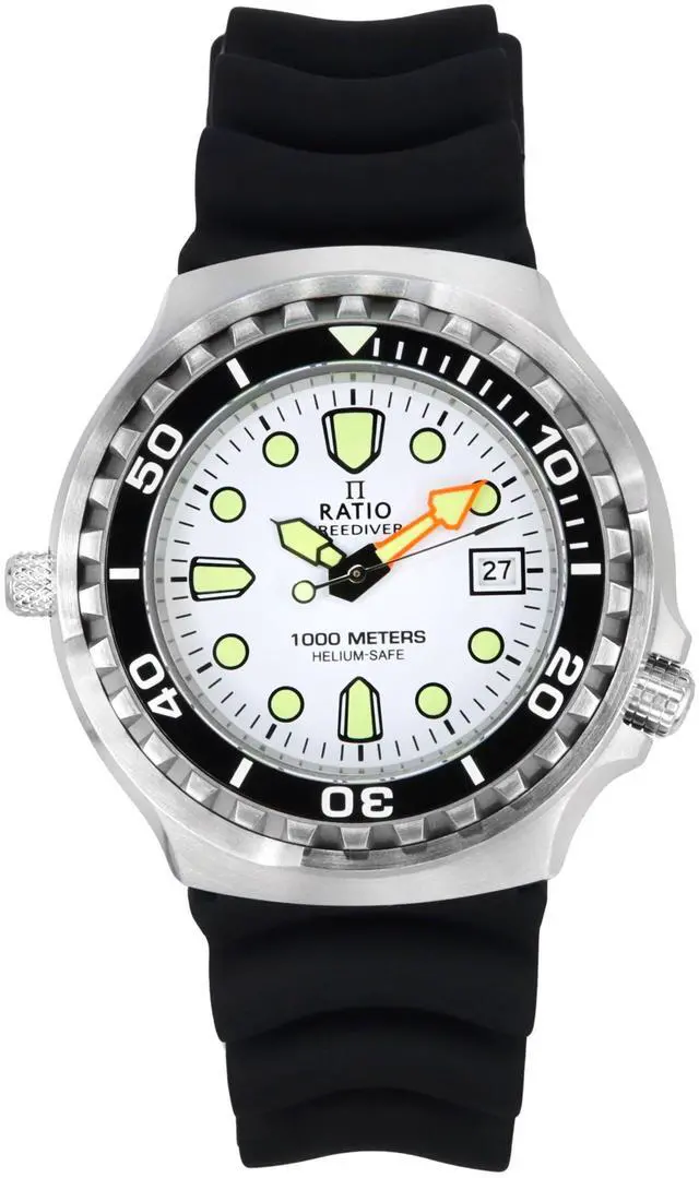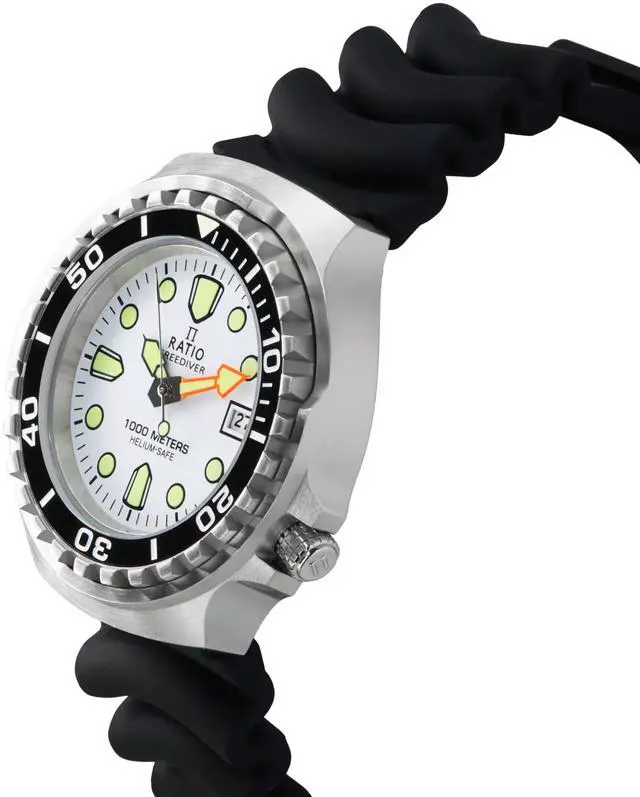 Illuminate your style with the 1038EF102V-WHT-V02's striking white dial, a feature that offers both elegance and high visibility. The precise quartz movement ensures reliable timekeeping, vital for deep-sea exploration. Sapphire crystal protection delivers exceptional scratch resistance, preserving the watchs pristine look. With 1000m water resistance and helium safety, this watch is engineered for professional divers who require unmatched durability and refined design.