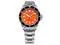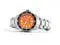 This model boasts a 316L stainless steel case and bracelet, making the watch highly resistant to corrosion and impacts. The robust sapphire crystal dial is presented in a vibrant orange shade, equipped with luminous hands and markers for visibility. The case back is uniquely engraved with a free diver image, lending a distinctive character to the watch.
