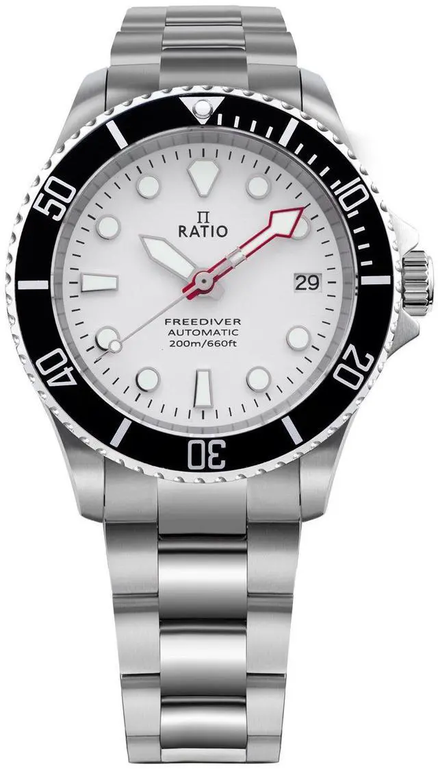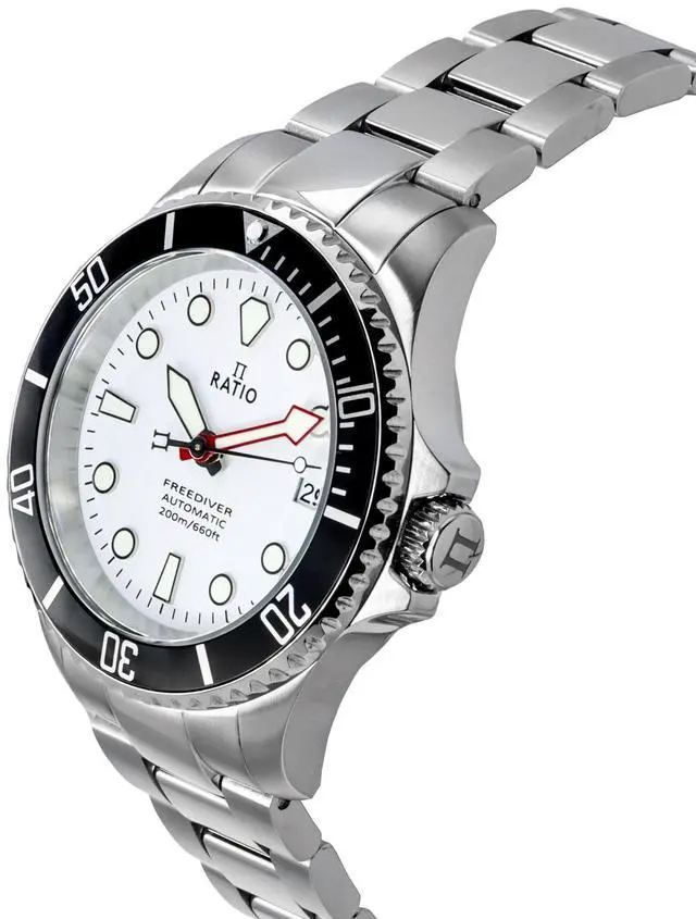 Ratio FreeDiver Sapphire Crystal Stainless Steel White Dial Automatic RTF047 200M Mens Watch