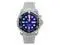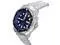 Analog, blue dial with large, prominent hands and hour indices, covered from the top with a sapphire crystal.