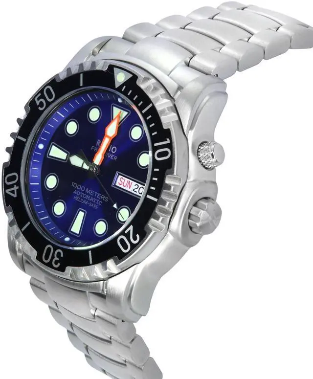 Ratio uses non-radioactive luminescent paint for the luminescence in the Freediver 1000m watch. It is a non-radioactive, radiant paint that's applied generously on the hands and the indices of the Freediver. The paint exhibits greater intensity and longer-lasting luminescence.