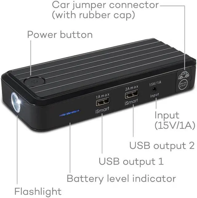 Built into the car jump starter are two USB ports with our iSmart technology. iSmart technology automatically detects and delivers the optimal charging current for any connected device - ensuring the fastest, most efficient charge.