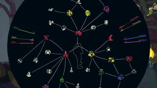 THE QUESTING TREE. Your quest log, skill tree, and mind map all at once. Each Quest Branch can take root in your mind and alter The Cleric’s playstyle through game-changing feats.