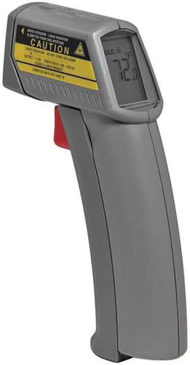Infrared Thermometer, Laser Sighting Type Single Dot, Emissivity Adjustability Fixed, Distance To Spot Ratio 8:1, Maximum Emissivity Setting 0.95, Minimum Temperature Measured Degrees F 0 Degrees F, Maximum Temperature Measured Degrees F 750 Degrees F, Minimum Operating Temperature Degrees F 32 Degrees F, Maximum Operating Temperature Degrees F 120 Degrees F, Body Style Pocket Size, Digital Display Screen Type LCD with Backlight. This item has been restricted from sale in the following state (s): []