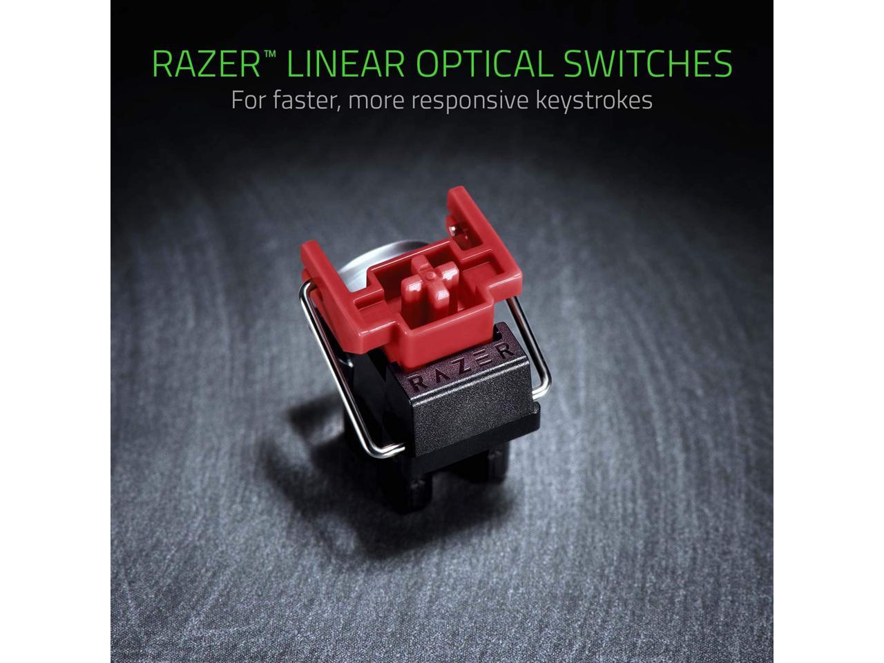 - Faster Than Traditional Mechanical Switches: Razer Linear Optical switch technology uses optical beam-based actuation, registering key presses at the speed of light (15-30% shorter actuation distance than other linear switches at 1.0 mm)