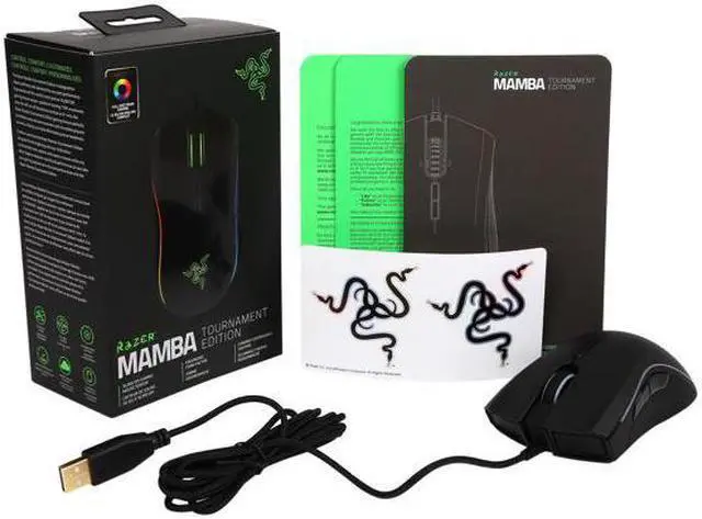 Control. Comfort. Customized. THE WORLD'S MOST PRECISE GAMING MOUSE SENSOR WITH 16,000 DPI Boasting the world's most precise 16,000 DPI gaming mouse sensor, the Razer Mamba Tournament Edition provides you with unsurpassable accuracy, so you'll have an even greater edge over your competition. With its ability to track 1 DPI increments and a lift-off cut-off distance as precise as 0.1 mm, the Razer Mamba Tournament Edition helps you to react instantly while you skillfully maneuver your way to victory. ERGONOMIC FORM FACTOR FOR COMPLETE COMFORT Designed for the most natural hand position, the Razer Mamba Tournament Edition boasts impressive ergonomics that reduce stress on your fingers when you're actuating buttons and eliminate unnecessary finger drag points. Whether you're training for a tournament or playing an overnight raid session, your Razer Mamba Tournament Edition gives you an extremely comfortable gaming experience the whole time. CHROMA LIGHTING WITH TRUE 16.8 MILLION CUSTOMIZABLE COLOR OPTIONS Taking personalization to the next level, you can now illuminate the Razer Mamba Tournament Edition's THS logo, scroll wheel, and side strips just the way you want. Each lighting location is individually customizable, allowing you to have a variety of lighting effects and the full spectrum of 16.8 million colors for an impressive displays that's as unique as your play style. Product Type: Mouse Movement Detection: Laser Product Type: Mouse Manufacturer Part Number: RZ01-01370100-R3U1 Movement Detection: Laser Movement Resolution: 16000 dpi Weight (Approximate): 4.69 oz Color: Black Color: Black Manufacturer: Razer USA Ltd Product Name: Mamba Mouse Product Line: Mamba Brand Name: Razer Pointing Device Connectivity Technology: Cable Brand Name: Razer Pointing Device Connectivity Technology: Cable Height: 1.7 Width: 2.8 Depth: 5 Number of Total Buttons: 9 Pointing Device Host Interface: USB Scroller Type: Tilt Wheel Ergonomic Fit: Right-handed Only Number of Total Buttons: 9 Pointing Device Host Interface: USB Scroller Type: Tilt Wheel Ergonomic Fit: Right-handed Only