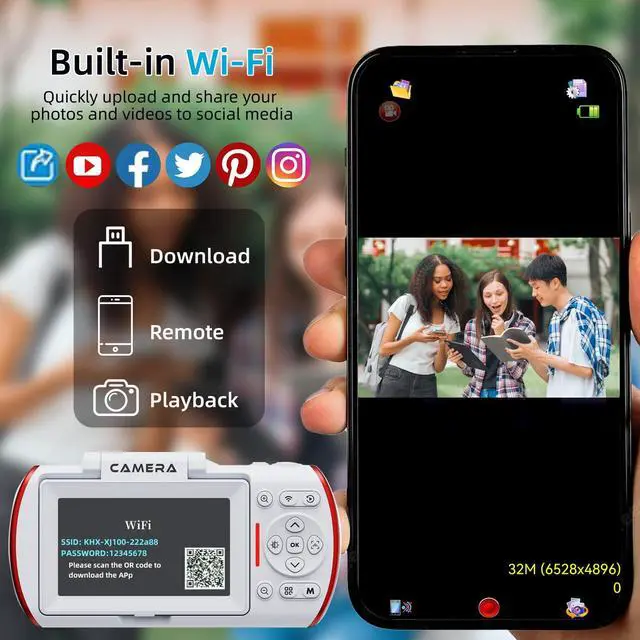 TRAVEL DIGITAL CAMERA WITH WI-FI DIRECT CONNECTION:This mini digital camera features built-in WiFi , digital camera that syncs to phone, allowing you to instantly transfer photos and videos and share them directly on social media. Compact, lightweight, and incredibly easy to use, its the perfect cheap digital camera for teens, beginners, and seniors alike an ideal first camera for everyone.