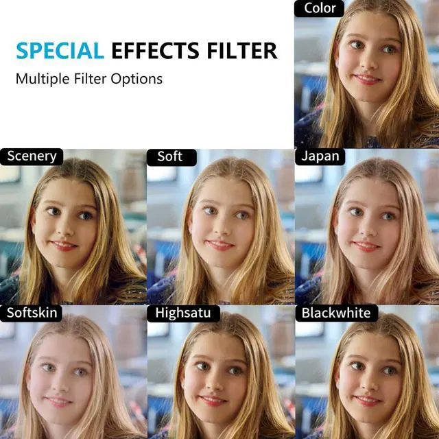 Multifunctional Vlogging Camera:Supports live streaming/online classes (USB connection to computer), Vlog shooting, and creative features (time-lapse photography, continuous shooting, filters). Built-in fill light + anti-shake, stable imaging even in low-light environments.