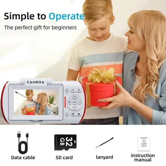 POINT AND SHOOT CAMERAS AND ACCESSORIES: 32GB memory card, Type-C cable, storage bag, and instruction manual. Easy to operate, ideal as a holiday gift (Christmas/birthday/Mother's Day, etc.)